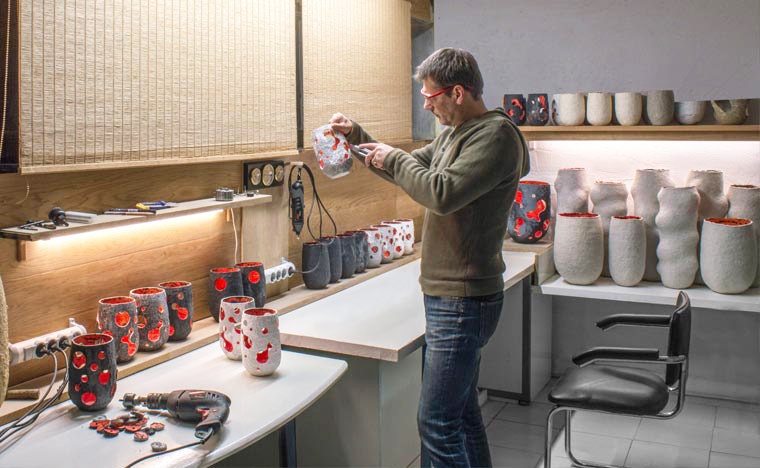 I am an interior designer and maker based in Lithuania, with over 15 years of experience creating side and coffee tables, lamps, vases, and sculptural objects. My work blends sculpture, design, and craftsmanship, resulting in functional pieces that also stand as art objects.