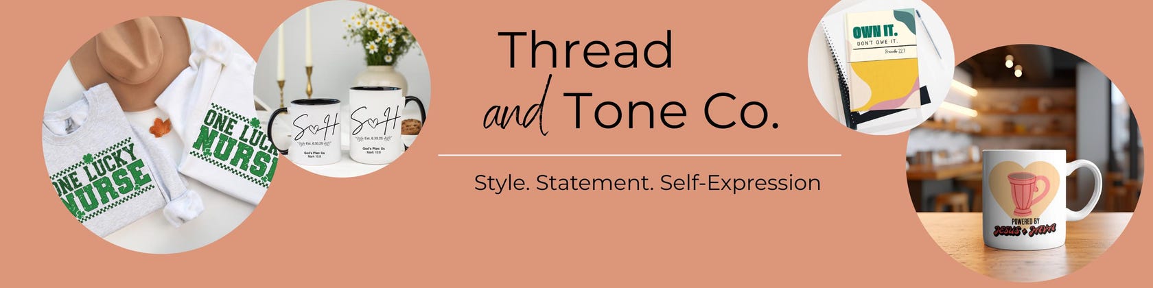 *Just Launched!*----- Thread & Tone Co. designs for trendsetters and statement-makers to spread joy. Our mugs, notebooks and apparel include bold designs with unbeatable comfort.