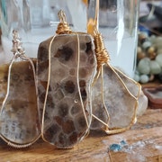 5 de 5 estrellasThis is such and interesting and pretty piece of honeycomb fossil. The necklace is beautifully crafted. Very pleased.