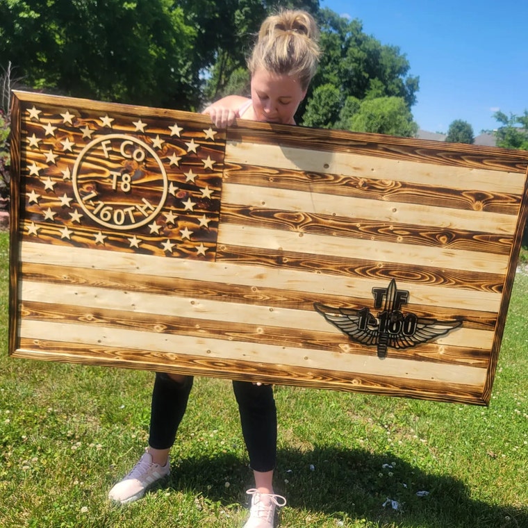 Wir haben Three Two Three im Jahr 2017 gegründet. Es fiel mir schwer, einen anständigen Job zu finden, nachdem ich mit meinem Mann, der im aktiven Dienst der Armee ist, von Michigan nach Tennessee gezogen war. Ich begann mit Cornhole, Giant Jenga und Yard Dice. Ich fand heraus, dass es mir wirklich Spaß machte, damit kreativ zu werden, und habe dann immer weiter ausgeweitet, was immer ich mir selbst beibringen konnte. Nachdem die Holzkosten nach der Corona-Krise in die Höhe schossen, wandte ich mich kleineren Artikeln zu und kaufte schließlich im Herbst 2020 eine CNC und im Frühjahr 2022 einen Laser.