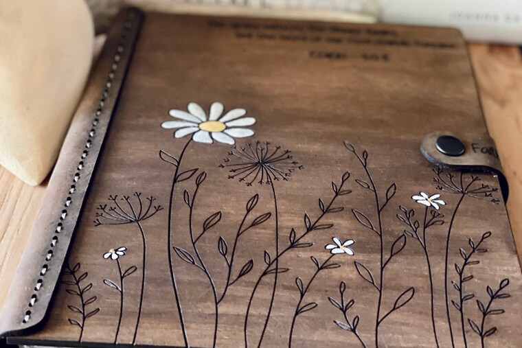 Meticulous attention to detail on all handcrafted items. Shown here is the hand-stitched wood and leather iPad cover. -
