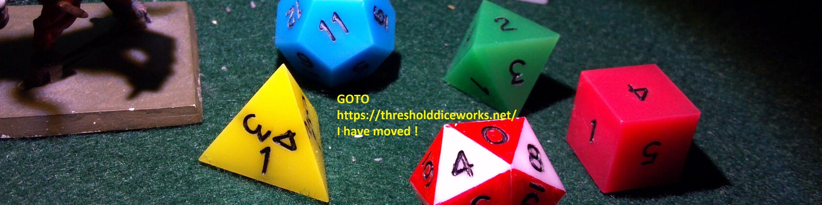 Behalten Sie wie immer die Facebook-Seite von The Threshold Diceworks im Auge, um aktuelle Informationen zu erhalten. www.facebook.com/Thresholddiceworks