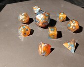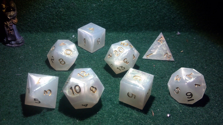 I have custom designed, and 3D printed molds to create a hybrid/low pressure injection molding process that yeilds High Quality polyhedral dice. They come un-inked to start, but I will ink them for a fee. These dice are made for the gaming table, they are made of a form of polyurethane very similar to what bowling balls are made of, they are durable and should last a lifetime!5/31