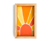 5 out of 5 starsFun Batik 🌞 Sun in frame. I only wish there was a way included to hang it as it seems a delicate matter with the canvas in the back and no hook. I thought it was to be hung on the wall. I still enjoy it and will prop it up on a shelf instead. Thank you 🙏