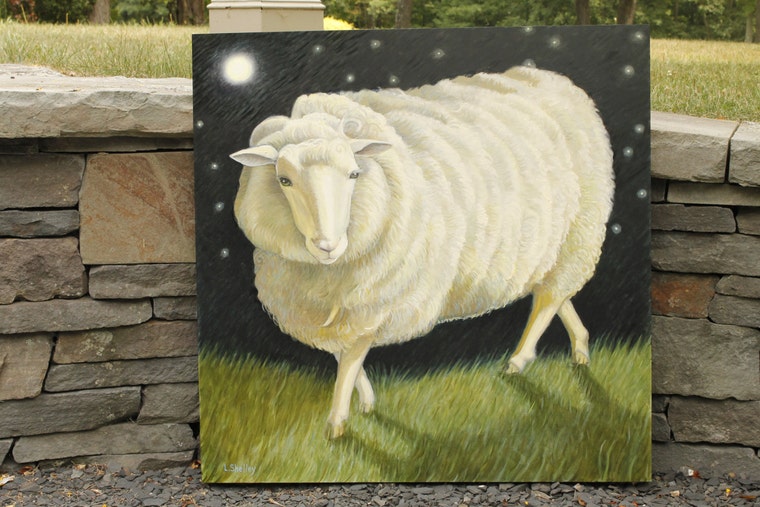 Marin the rescued sheep. Commissioned oil painting. 24 x 24"