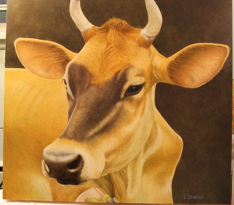 Fawn, the rescued cow. Detail of commissioned oil painting. 36 x 36" -