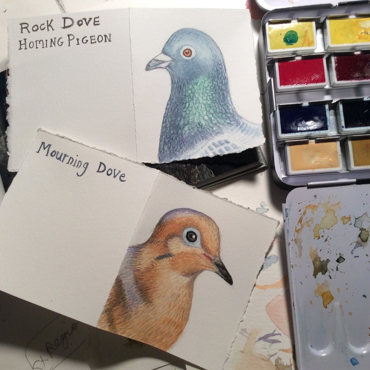 Watercolor birds in progress. -