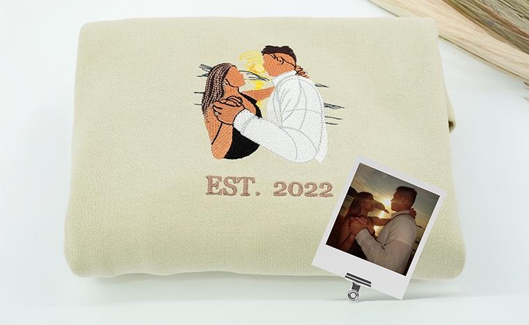 Matching Hoodies For Couple , Embroidered Couple Portrait Sweatshirt With Roman Numeral -