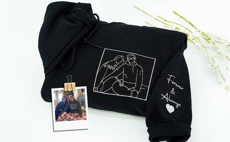 Embroidered Family Portrait Hoodie With Photo -