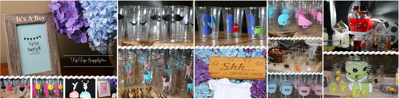 My cups can be used for favor containers not just drinking. Vinyl stickers can be put on many items to add details.