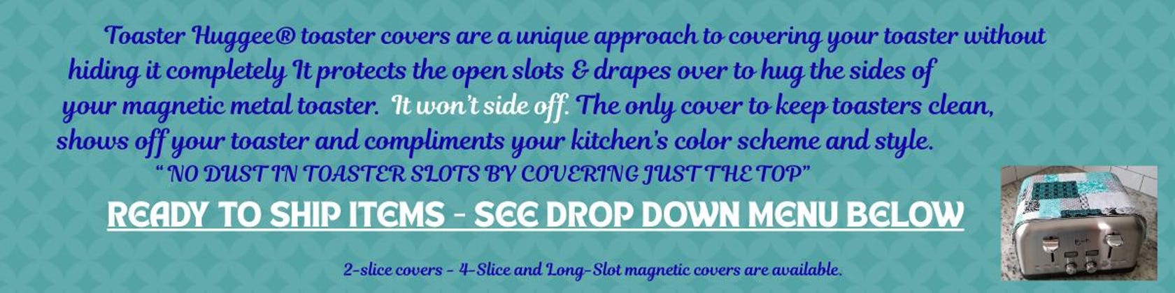 Toaster Huggee® is a magnetic fabric toaster cover. It hugs the sides so it stays in place! It's one of a kind!