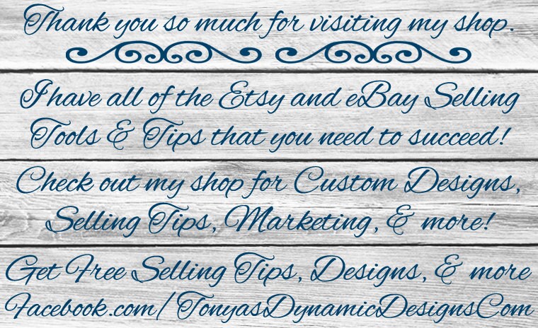 ~ Etsy Verkopers: Als je ooit op eBay hebt willen verkopen om je winst te verhogen, bekijk dan mijn eBay eBook dat ik schreef over hoe je aan de slag kunt gaan op eBay. Het is te koop in mijn Etsy shop.