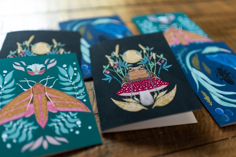 Hi, friends. I'm Sarah, a native Floridian illustrator and cardmaker. I currently work as a fulltime artist, selling prints and cards (and occasionally t-shirts) of my hand drawn illustrations. My whimsical, nature-inspired folk art is printed on archival matte paper and is made to last. I currently live in Jacksonville, Florida with my husband and our three beautiful children.