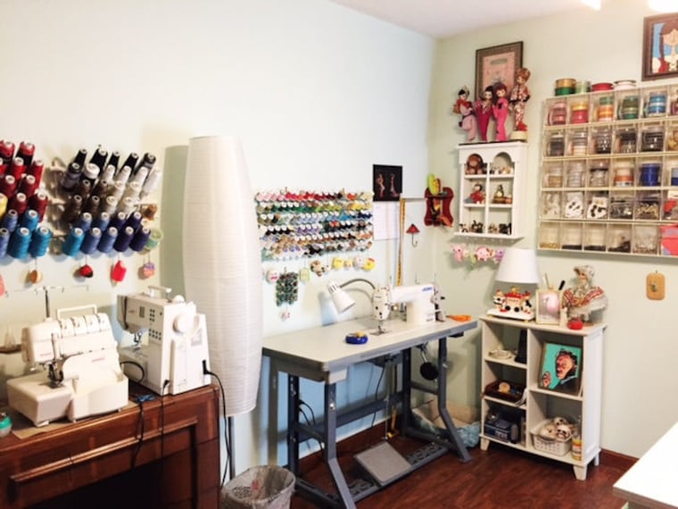 I work in my home studio on industrial JUKI machines. I also have a 1946 Singer, a 1970s-era Singer and a 1990s-era Bernina--the '46 Singer is my favorite of the bunch. I love that I'm creating beautiful garments on the same machine that my grandmother used for years.