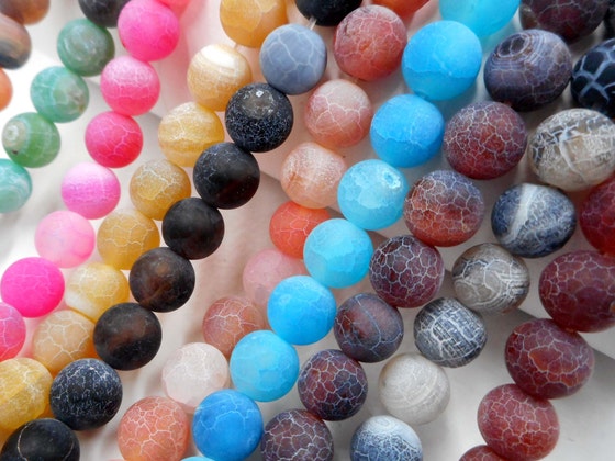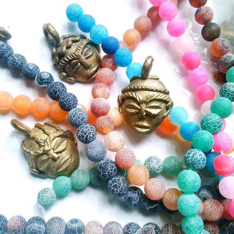 Frosted Crackle Beads And Brass African Masks -