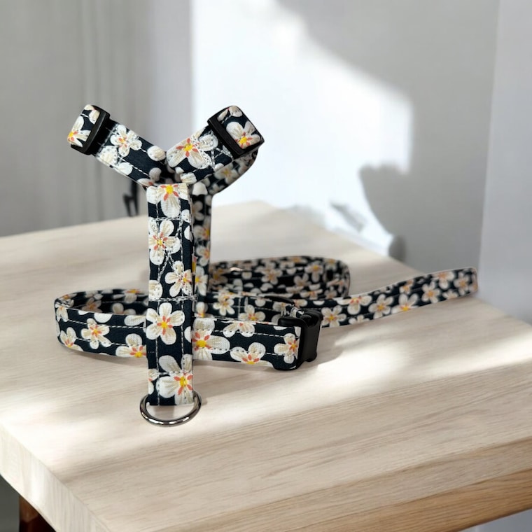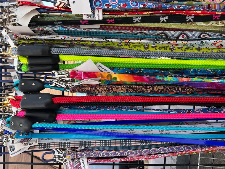 • Custom harnesses, collars, and leashes with a strong inner webbing core