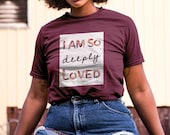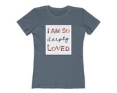 星 5 個のうち 5 個I felt wrapped in love as I walked around the city in this shirt. So many people smiled at me—one even made a heart with their hands, reaffirming the message on my shirt. It has taken me roughly thirty years to believe this shirt’s love note to me. I am thrilled to walk around with a shirt that proudly states these 5 life affirming words: I. Am. So. Deeply. Loved. ✨