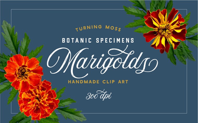 Marigold Flower ClipArt- Botanic Specimens - Isolated Photographic Digital Elements -