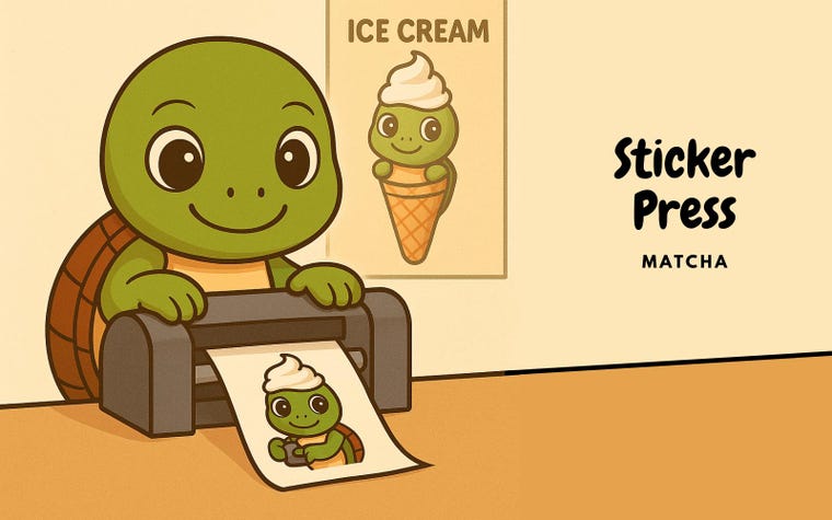 And so, our turtle friend rolled up his sleeves (okay, not literally — he doesn’t wear sleeves) and opened a tiny sticker factory with help from his two closest companions: