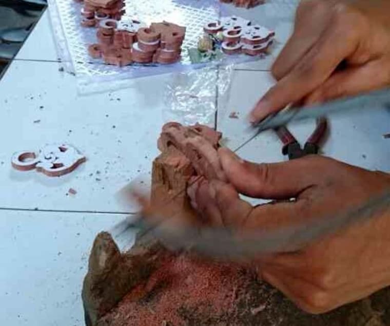 Two Feathers represent both Koming and I. I often feel like my life floats around like a feather. During my travels I found myself float into Koming's shop and sat down and talked to him and his father. I was really impressed by his work and we kept in touch after I left the shop. Our talks back and forth gave us the opportunity to become good friends. I made it a mission that I would bring Komings work to be available for the rest of the world.