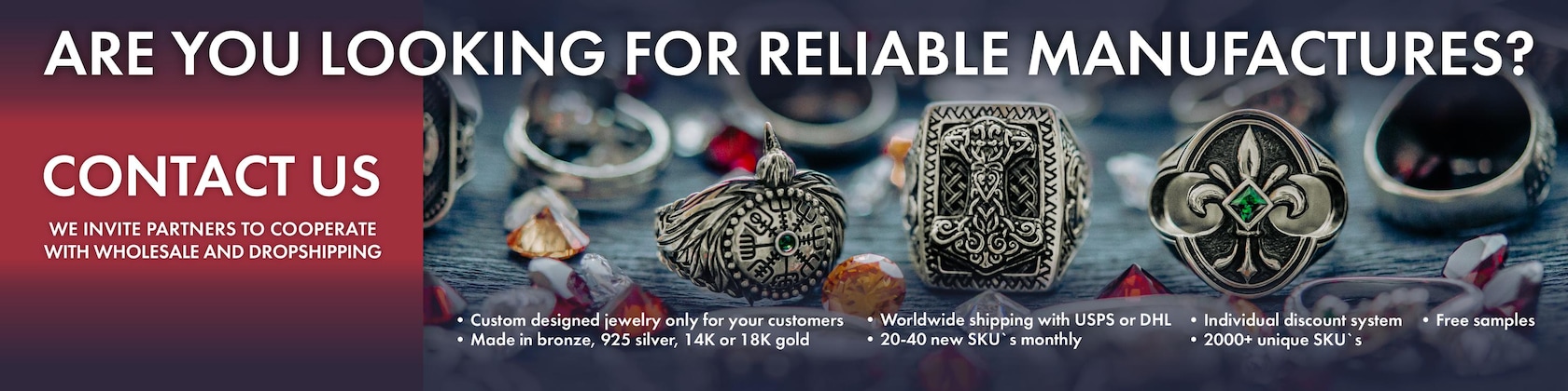 We craft only with 925 (sterling) silver, 14K, 18K gold, platinum, and bronze.