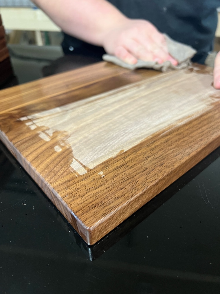 Using Mineral Oil makes all the difference! It enhances the wood grain while also protecting the cutting board! -