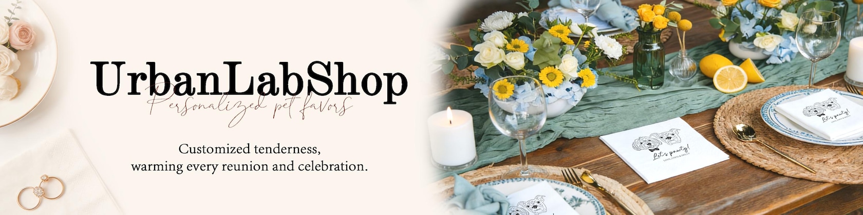 At UrbanLabShop, we craft custom pet portrait keepsakes for all kinds of celebrations — from weddings and bridal showers to birthdays, holiday gatherings, and quiet nights at home. Every product, whether it’s a printed napkin, an acrylic stir stick, or a neoprene can cooler, starts with your pet’s photo and our commitment to capturing their unique personality. We take pride in turning those precious furry faces into tangible memories — whether it’s a single pet portrait, a multi-fur-baby design, or a custom phrase paired with their cute smile. Whether you’re celebrating a milestone with 100 guests or treating yourself to a little daily joy, we treat each piece — with the same careful attention and loving detail.