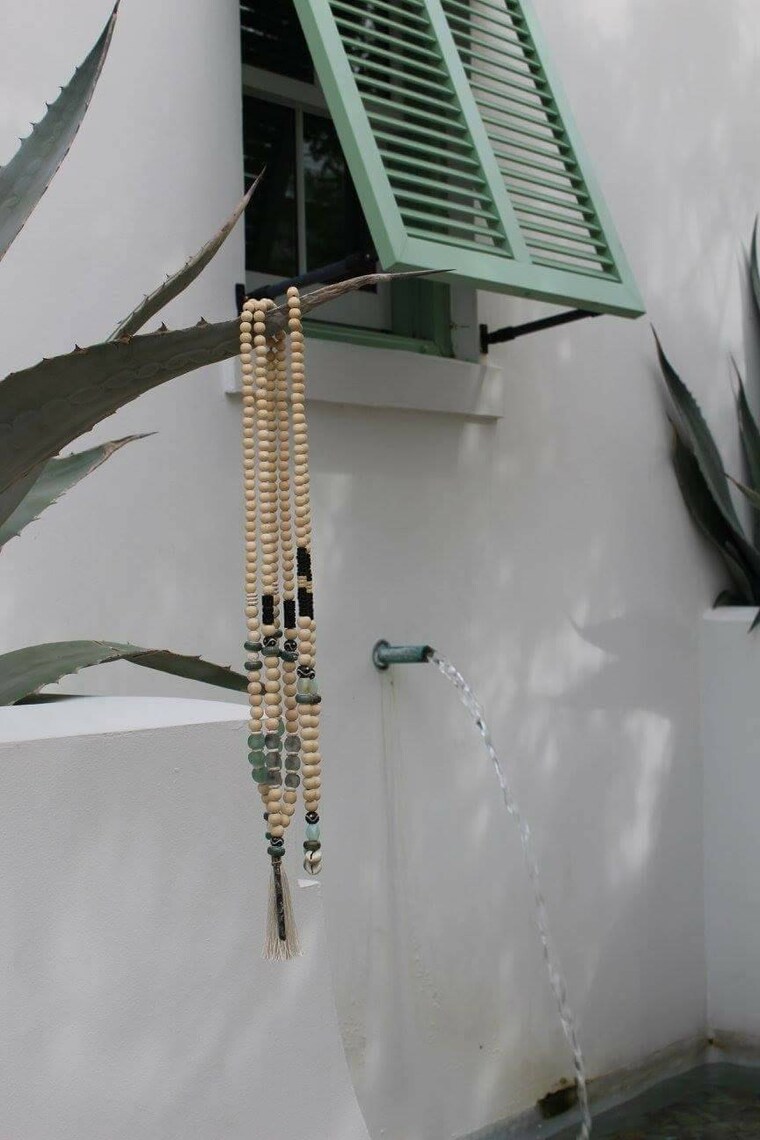 I love practicing yoga and was inspired by the beauty and simplicity of the Mala Yoga necklaces and bracelets. They are the inspiration behind my jewelry. I am also planning to add to my designs a collection of clutches and other accessories.