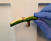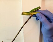 1 de 5 estrelasstarters, my rating is not perm. I did some serious research on a few things, some things, not until after I ordered. I’ve seen a few sticks around that were more vibrant/solid. The stick I received is a bit mushy. Did not arrive in moss, only wet tissue/plastic bag. I commend the seller on a speedy ship time! I didn’thh have moss the first day but I did the next morn thankfully. My current concern is with the mushiness of the stem as many people have stated it’s probably internally rotted. It’s pretty pricey for the stick’s condition, min my opinion. I’m following a few experts opinion, hopeful but was told not to hold my breath. I will update later when something happens. Update. Black. All black.