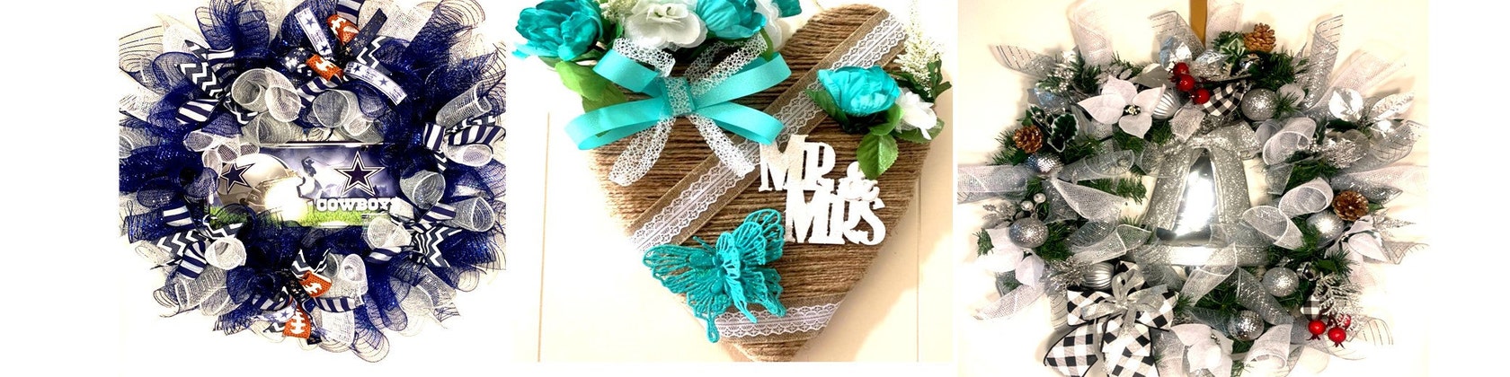 I work for my local social services. I just kind of like to use crafts to unwind from a hard day and raising a high school senior. For years I've been just doing acrylic paintings, but I wanted to expand my crafts to include flowers. I started planning my wedding last year and I wanted to make it look like a million bucks without actually spending it. One of the hardest things in life inspired me to make wreaths. On June 24, 2021, also his birthday, my brother passed away and just 13 days before my wedding. My first wreath was a heart wreath made with glitter tulle and roses dedicated to him. I made my invitations, table numbers, signs, and monogram robes, boutonnieres and slippers for myself and everyone participating in my wedding. I write books, poetry, music, and now home decor crafts are added to my gifts. I enjoy sharing them with the world.