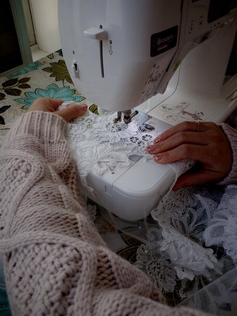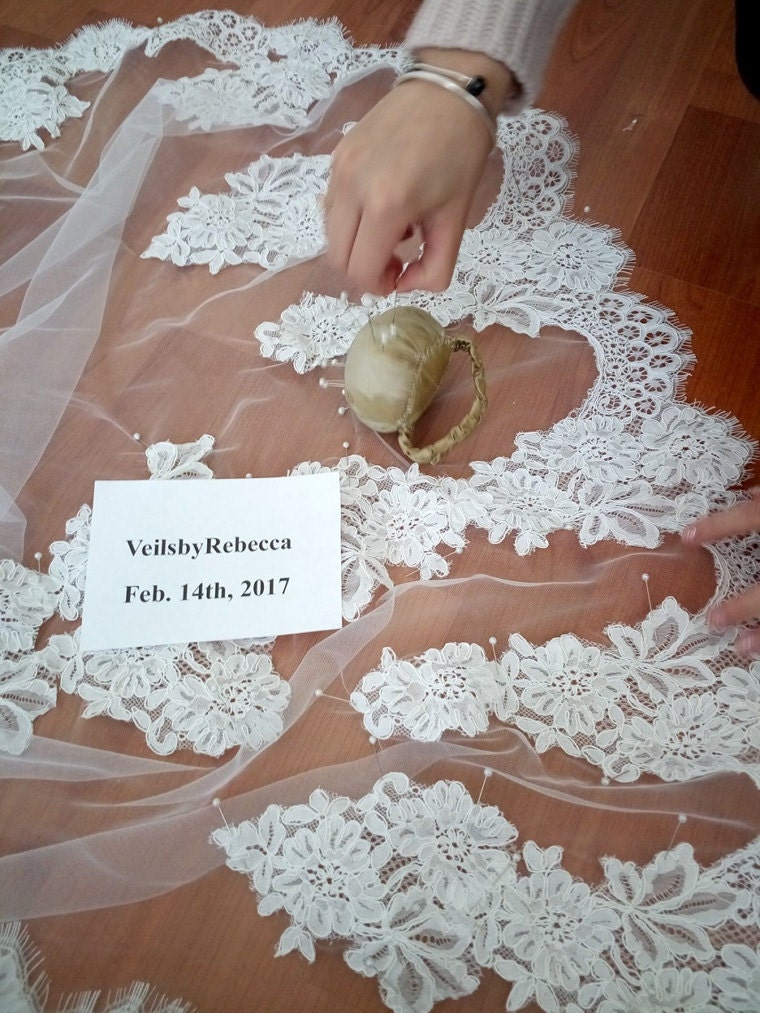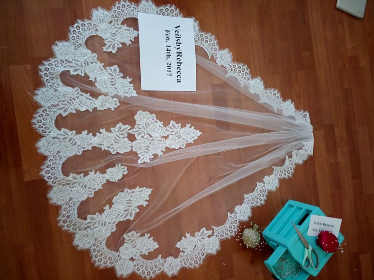 I am the only person to manage this online shop and create the veils by myself in full time before May 2017. Now I have a partner Zoey who is a new designer in wedding lines. She bring me many new ideas to design lovely wedding veils. They are made of very soft illusion bridal tulle and high quality lace including French Alencon lace, French Chantilly lace and Venice lace.