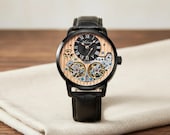 5 out of 5 starsThe men's mechanical watch in black with a miniature dial and black leather strap goes well with any suit or outfit that men mainly have in their closet. I am satisfied with my recent purchase.