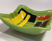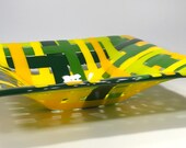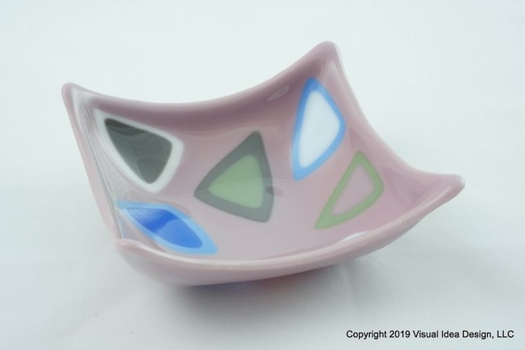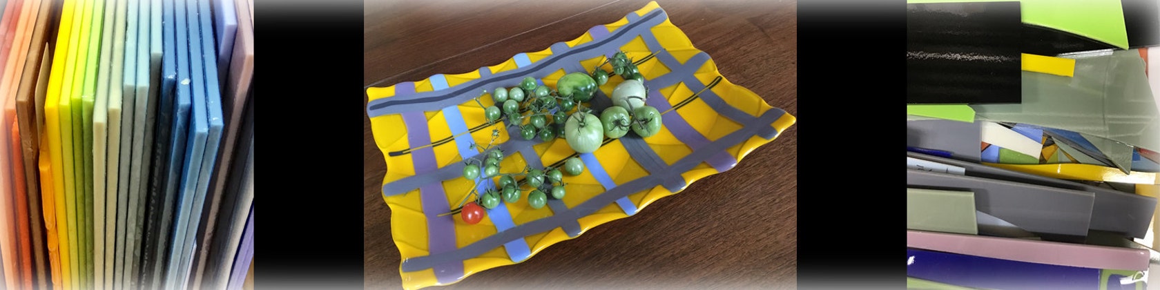 We take raw glass, ruminate for a while, then design, cut, fuse and slump it into finished pieces