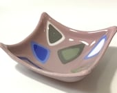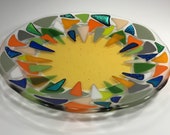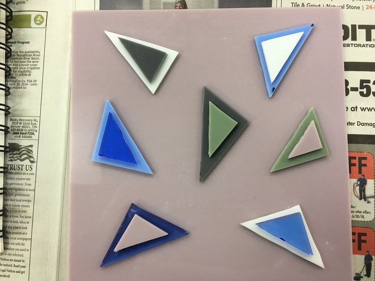 Layout of 7” bowl showing the raw cut glass pieces arranged for fusing. -