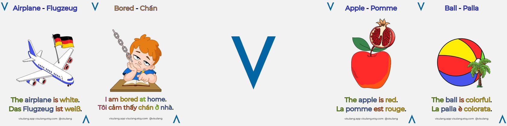 At Visulang, we specialize in digital download flashcards designed to revolutionize your language learning experience. Our unique method combines the power of visual mnemonics and color-coding to help you quickly acquire vocabulary across our language offerings: Spanish, German, French, Polish, Italian, Portuguese, Croatian, and Vietnamese.