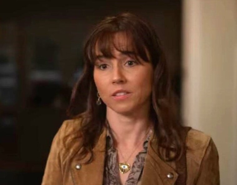 Linda Cardellini wearing our Crystal quartz earrings on S3 Dead to Me. -