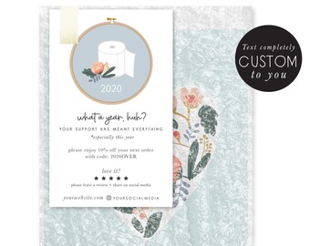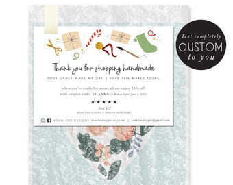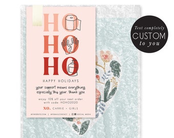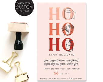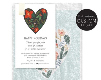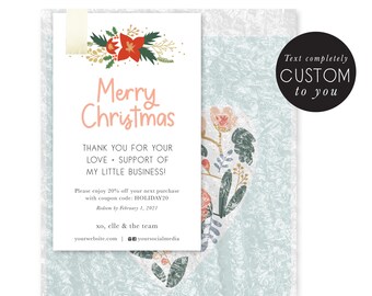 customized holiday thank you - thank you - christmas - shop small coupon - promotional card - hand illustrated - package insert - handmade