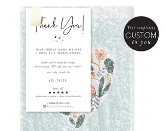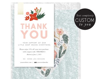 customized thank you - snap tag share card - small business - coupon - promotional card - floral hand illustrated - thank you package insert