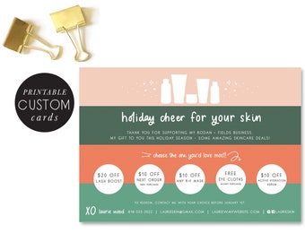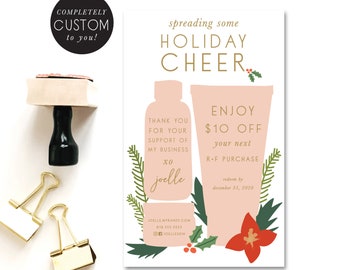 rodan and fields holiday coupon card - ALL coupons custom to you - you choose coupons - christmas - holiday promos - hand illustrated