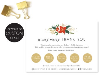 customized rodan and fields holiday coupon - christmas - thank you - small business - shop small - holiday coupon - promo - hand illustrated