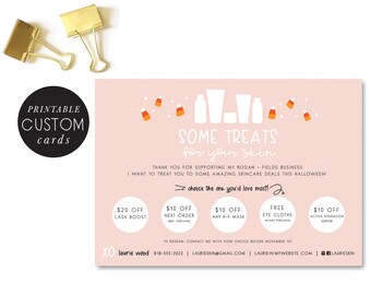 rodan and fields coupon card - ALL coupons custom to you - you choose coupons - halloween - fall promos - hand illustrated - business -DIY