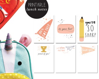 lunch box notes - printable lunch box love notes - hand illustrated pink school stuff - printable instant download - DIY - 6 assorted cards