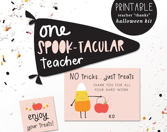 teacher thanks - halloween printable kit - hand illustrated - halloween - thank you notes - trick or treat - DIY - simple - halloween treats