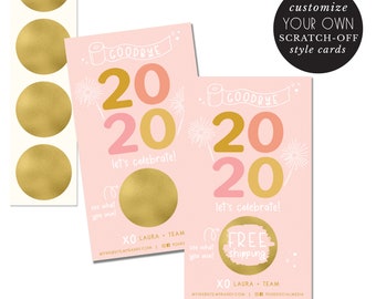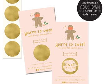 customized holiday scratch off cards - business cards - promotion - small business - hand illustrated - calling card - incentive scratch off