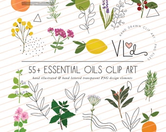 ESSENTIAL OIL clip art - hand illustrated - essential oil plants - set of 57 - personal use - original - digital - easy - transparent PNG