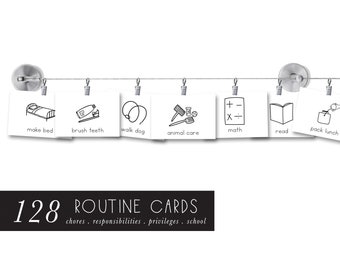 routine cards - set of 128 - daily routine - chore cards - hand illustrated - job cards - responsibility - printable download - homeschool