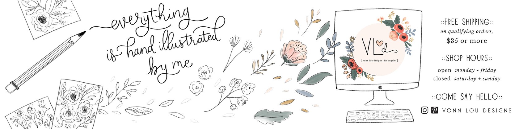 Hello! I'm Cheryl. VonnLou DESIGNS was born out of a love for design, stationery, invitations, hand lettered fonts, paper & art. Thanks for visiting!