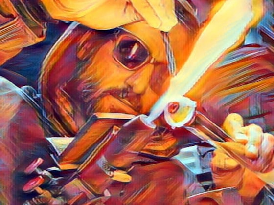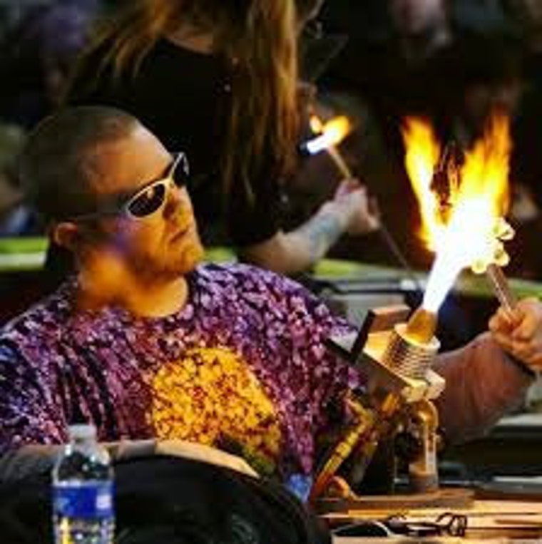 Mijn naam is Kenny Talamas en ik verdien mijn enige brood met het maken en verkopen van glaskunst. Ik kreeg in 1998 de 'weg van de vlam' te zien van Robert Mickelson en in de loop der jaren heb ik met andere glaskunstenaars samengewerkt en veel winkels bezocht om mijn eigen persoonlijke perspectief te ontwikkelen. Ik ben verhuisd van Florida naar Oregon en heb onderweg veel Glass Studios (Star Ships) thuis gebouwd.