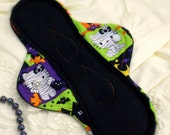 4 out of 5 starsShipping was a little behind, but seller was very nice about explaining why. Very nicely made. A few stitches aren't perfect but then again it is handmade! Yet to use it. Seems like it would work well with medium flow or as a back up for long days. If she makes any more Halloween pads, I will definitely buy.
