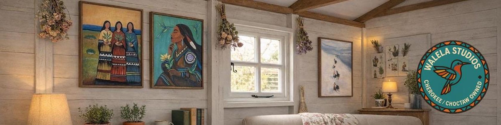 Our studio, Walela Studios, is Cherokee/Choctaw owned, founded by Layne and Chris Polzin. Together, we create art and jewelry with meaning, inspired by my Cherokee wife and partner, Walela, and by the shared heritage, spirit, and beauty of Native culture and nature.